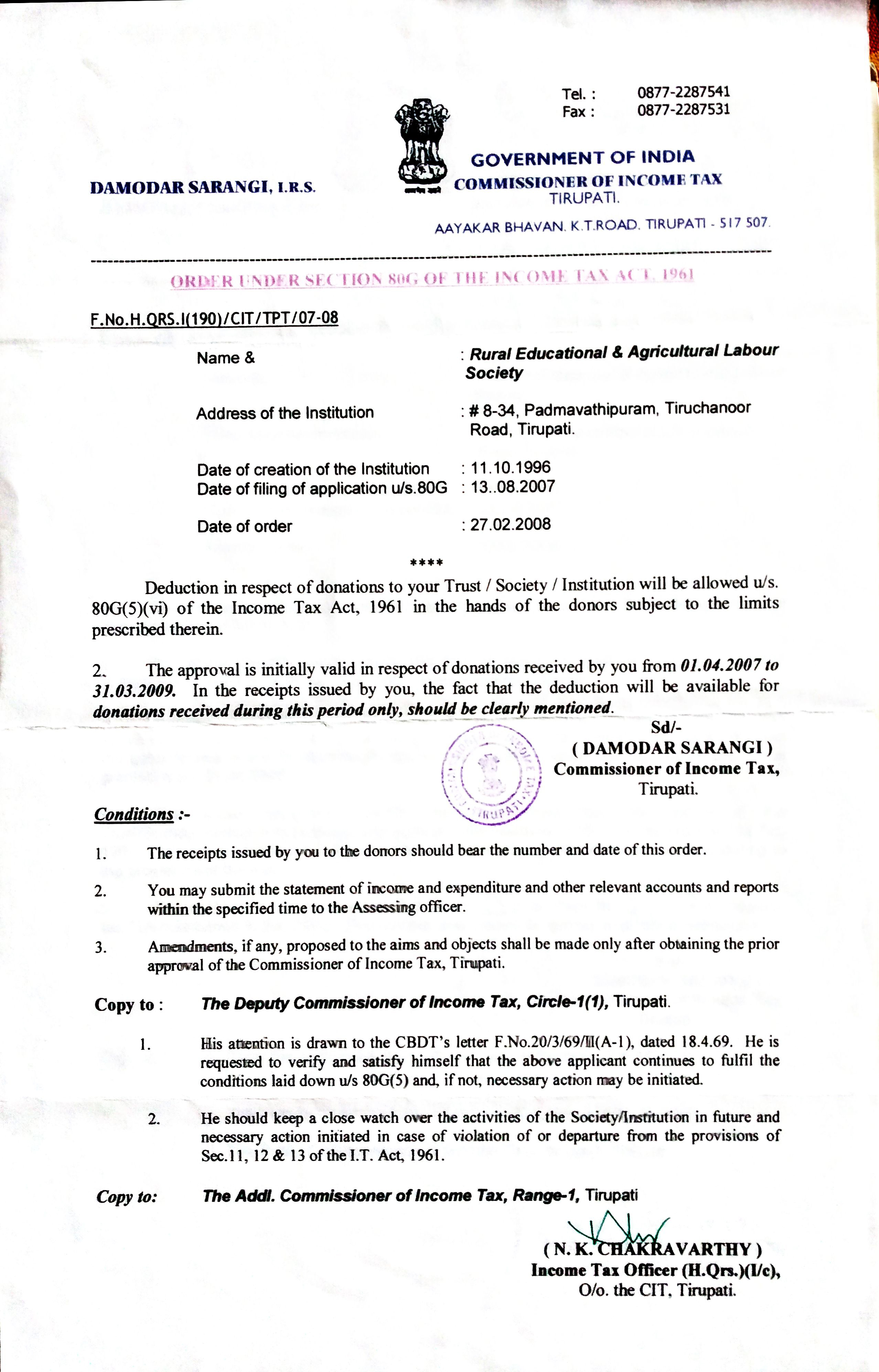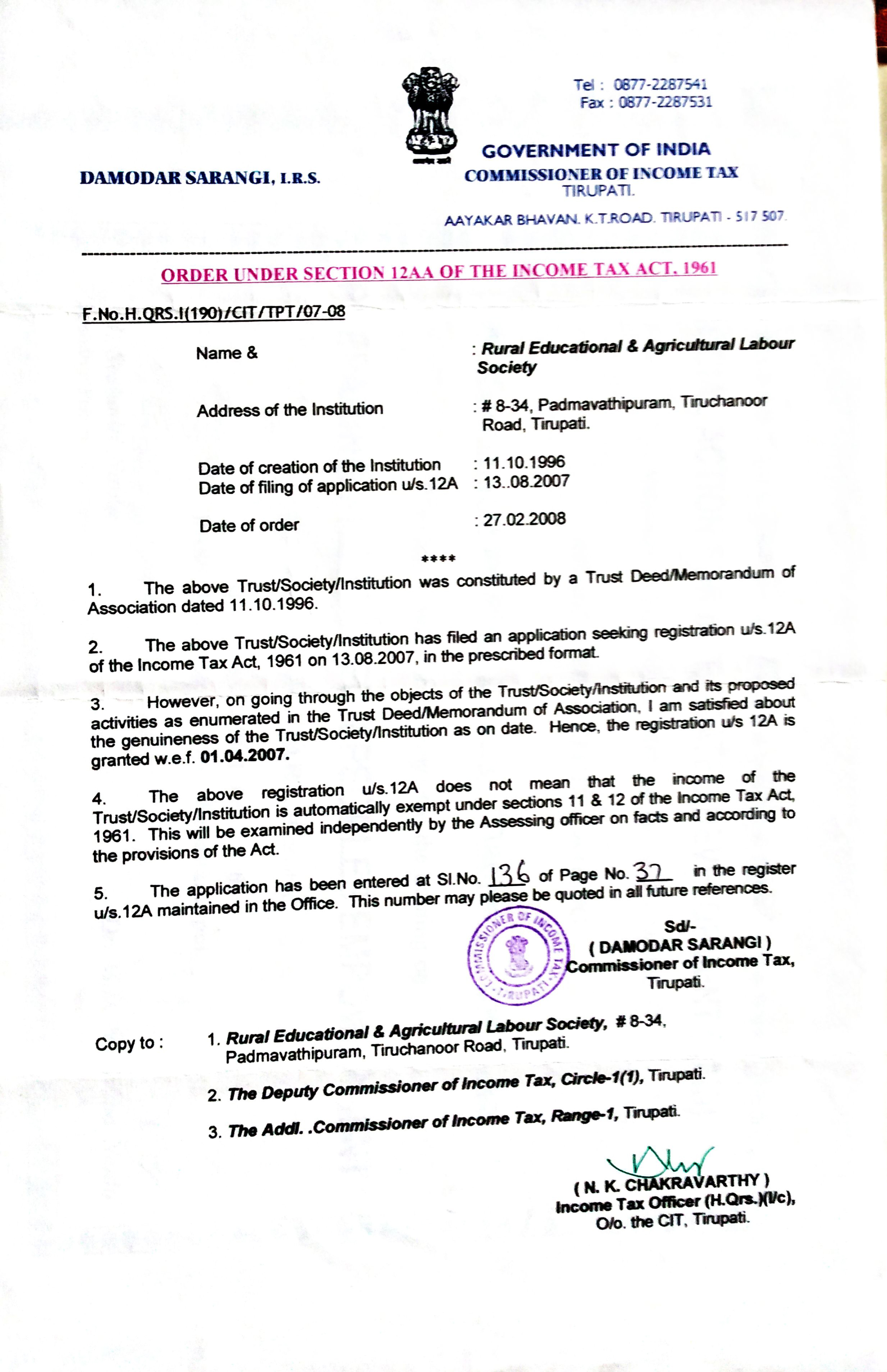 Door No:18-3-108, 1st Floor, Near Alipiri Police Station, Tirumala Bypass Road,Tirupati- 517507.Chittoor District. Andhra Pradesh.